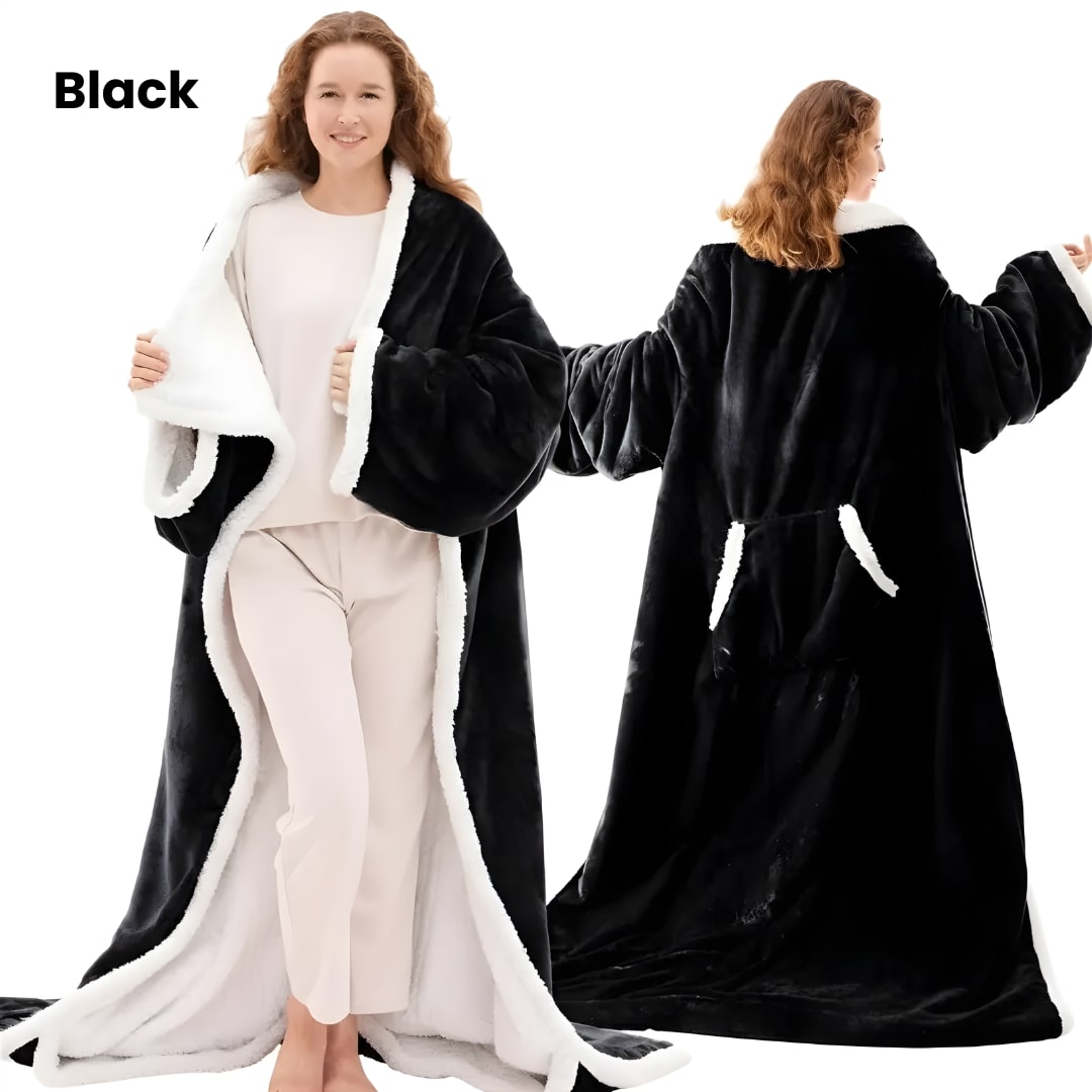 Plush sherpa on the inside, soft flannel on the outside, and heat that surrounds you from head to toe — it’s like slipping into a warm hug you never want to take off.